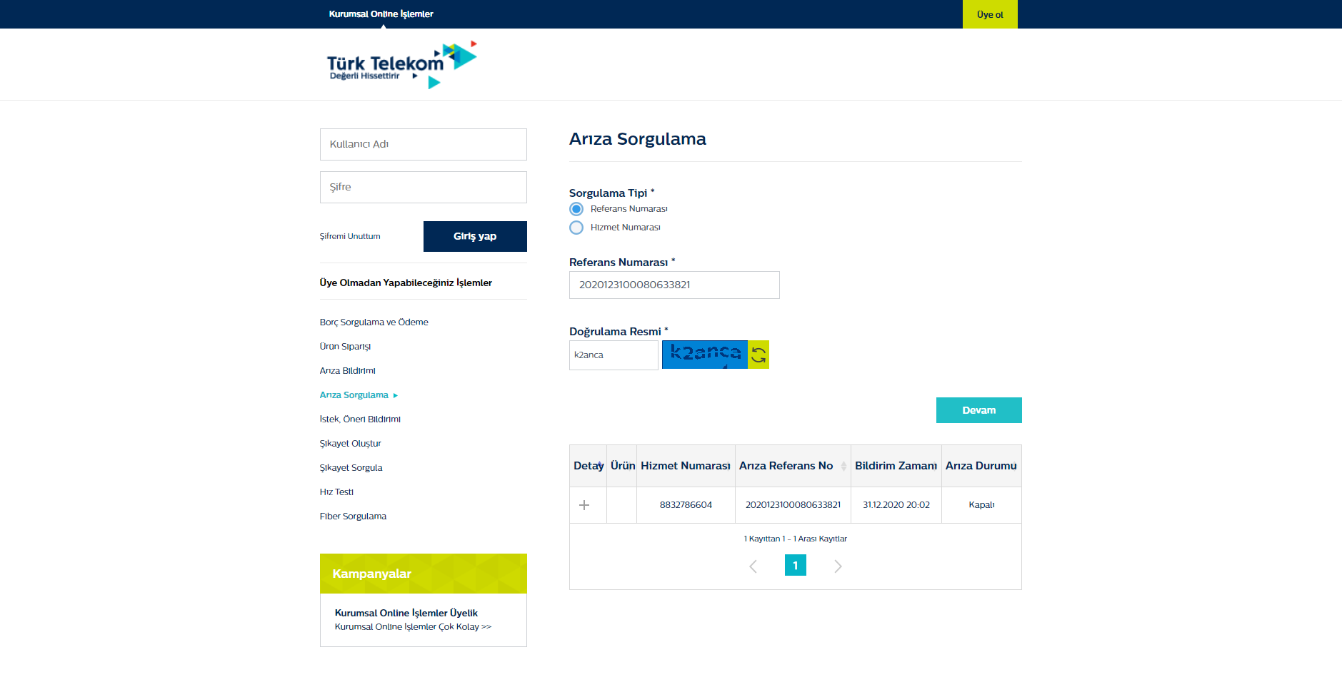 Hocam kontrol ettim arıza durumu kapalı diyor. Belli ki gelip bakmadan kapatmışlar. Böyle sorumsuz bir ISS işte bu Türk Telekom. Bende de aynısını yaşattılar 1 ay sonra gelip düzelttiler. Bölgenizde ki santraldeki adamlara bağlı bu durum. Bir daha destek talebi açın tekrar saha ekiplerine bildiricekler. Düzgün bir elemana denk gelip kontrol sağlanırsa sorununuz çözülür. Eğer süreci hızlandırmak istiyorsanız bölgenizdeki TT santraline gidin biraz sinirli bir şekilde belirtin durumu en geç ertesi gün gelirler kontrole.