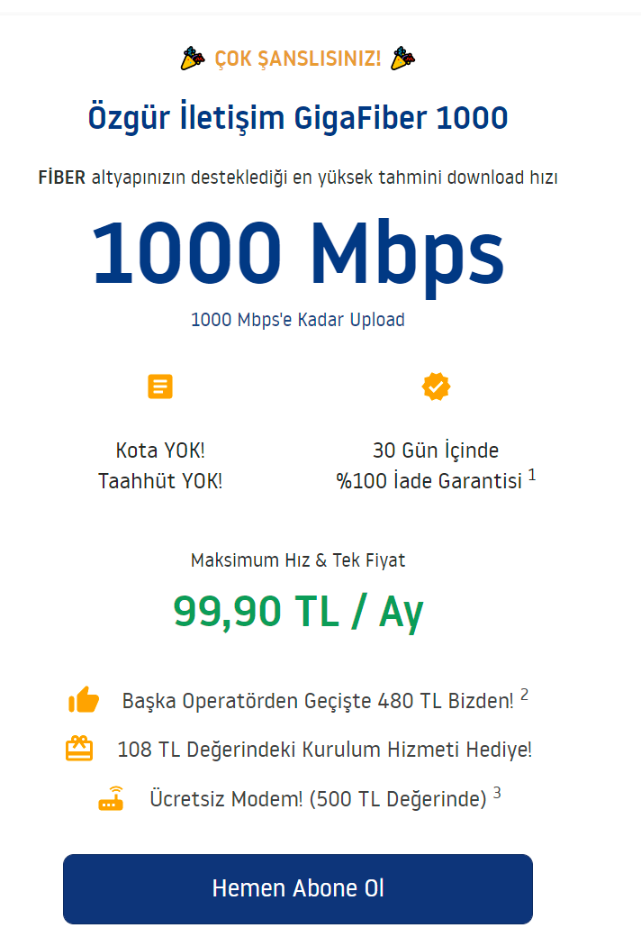 Arkadaşlar haftaya taşınıyorum, yeni internet bağlatacağım taşındığım yere aklıma TurkNet geldi sorguladım sitelerinden adresi 1000MBPS verebileceklerini söylüyor. Türkiye standartları için çok uçuk geldi tabii fiyatı da 100 lira. Kullanan var mı? Bağlatmalı mıyım? Bu hızı gerçekten veriyorlar mı yoksa aldatmaca mıdır?