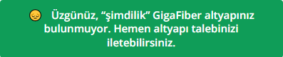 Eğer adresinize GigaFiber gelmesini istiyorsanız aşağıdaki linkten "GigaFiber istiyorum" başvurusu yapabilirsiniz.