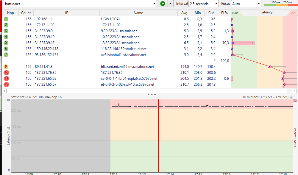 Arkadaşlar merhaba. LoL'de veya Valorant'ta pingim sabit ama laglar giriyor paket kaybı yaşadığımı düşünüyorum TurkNet'in fiberini kullanıyorum pingplotter değerlerim böyle. LoL ve Valorant'ta TurkNet'in fiber altyapısına geçtiğimden beri bu sorunla karşılaşıyorum TurkNet VDSL 75 MB'lik paketi kullanırken böyle bir sorunum yoktu. Bilen arkadaşlar pingplotter değerlerimi ve ne yapmam gerektiğini söylerse sevinirim.