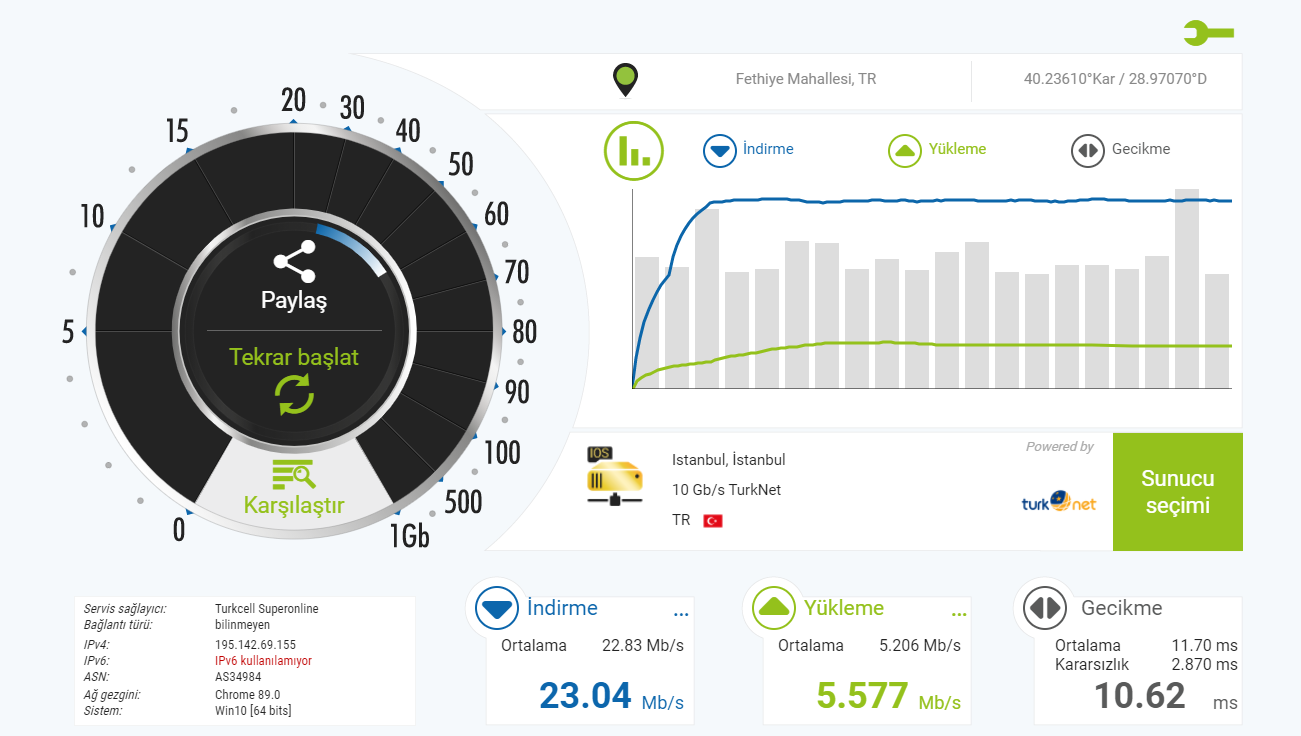 Kardeşim Superonline kullanıyorsan neyin tribindesin? :D Her ISS için yanlış sonuç verecek diye bir şey yok. Ama TurkNet'in fonladığı bir site ve TurkNet için doğru sonucu vermediğine eminim. Ayrıca bozuk saat bile günde iki defa doğruyu gösterir. Şayet bana da vadettikleri hızı verselerdi yanlış sonucu vermesine rağmen doğru gözükecekti. Bu arada aşağıdaki videoyu kanıt olarak attığım mesajı destek kaydından sildiler diyorum ve hâlâ neyi tartışıyoruz?