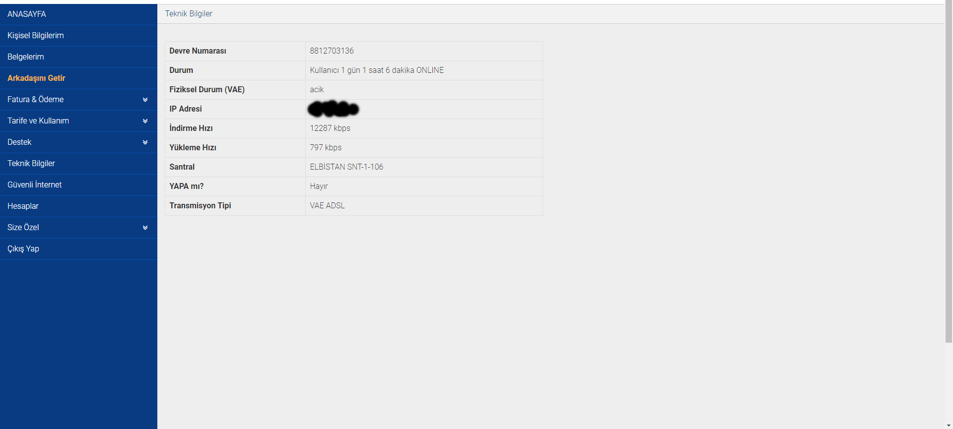 Online işlemler'e girip teknik bilgilere bakınız durum fiziksel durumda ne yazıyor.Hangi modemi kullanıyorsun?
