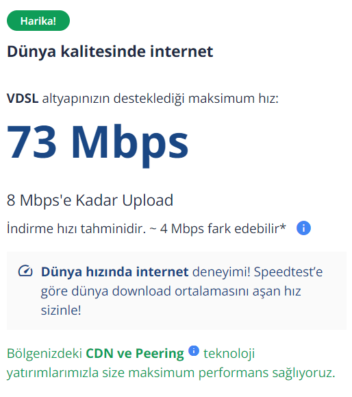 75Mbps Millenicom öneririm. 2016'dan beri tahhüütlü müşteriyim ping sorunumu 1 günde çözüyorlar kesintisiz hizmet.