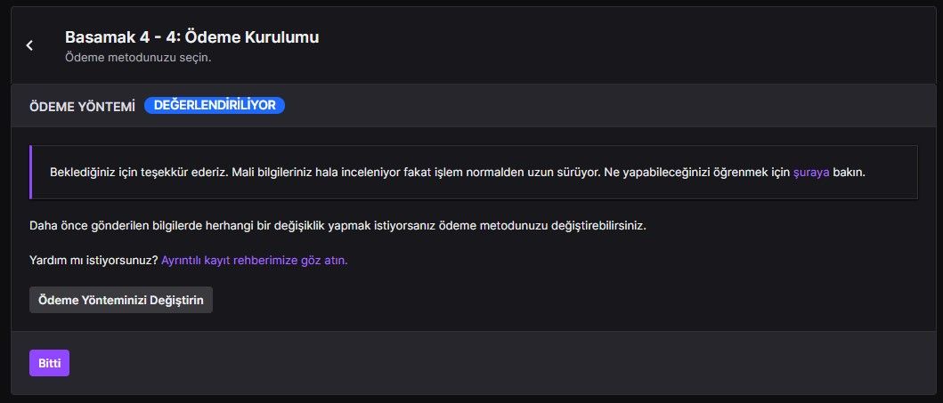 Twitch'de iştirak olabilmek için gereken şartları yerine getirdim ve bana bir form gönderdiler, formu eksiksiz doldurdum ancak 2-3 gündür "değerlendiriliyor" yazıyor.