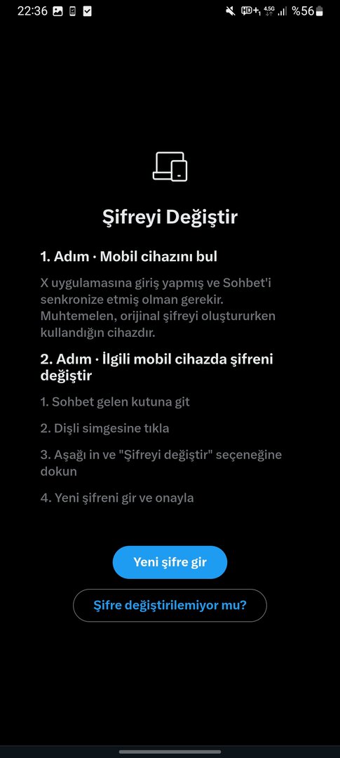 Bugün Twitter mesaj bölümüne girdiğimde benden 4 haneli şifre istedi. Sanırım yeni güncellemeyle artık şifre istiyor fakat şifrenin ne olduğunu bilmiyorum, daha önce şifre oluşturmadım. Telefonumun şifresi de 7-8 haneli. 15 deneme hakkım kaldı.