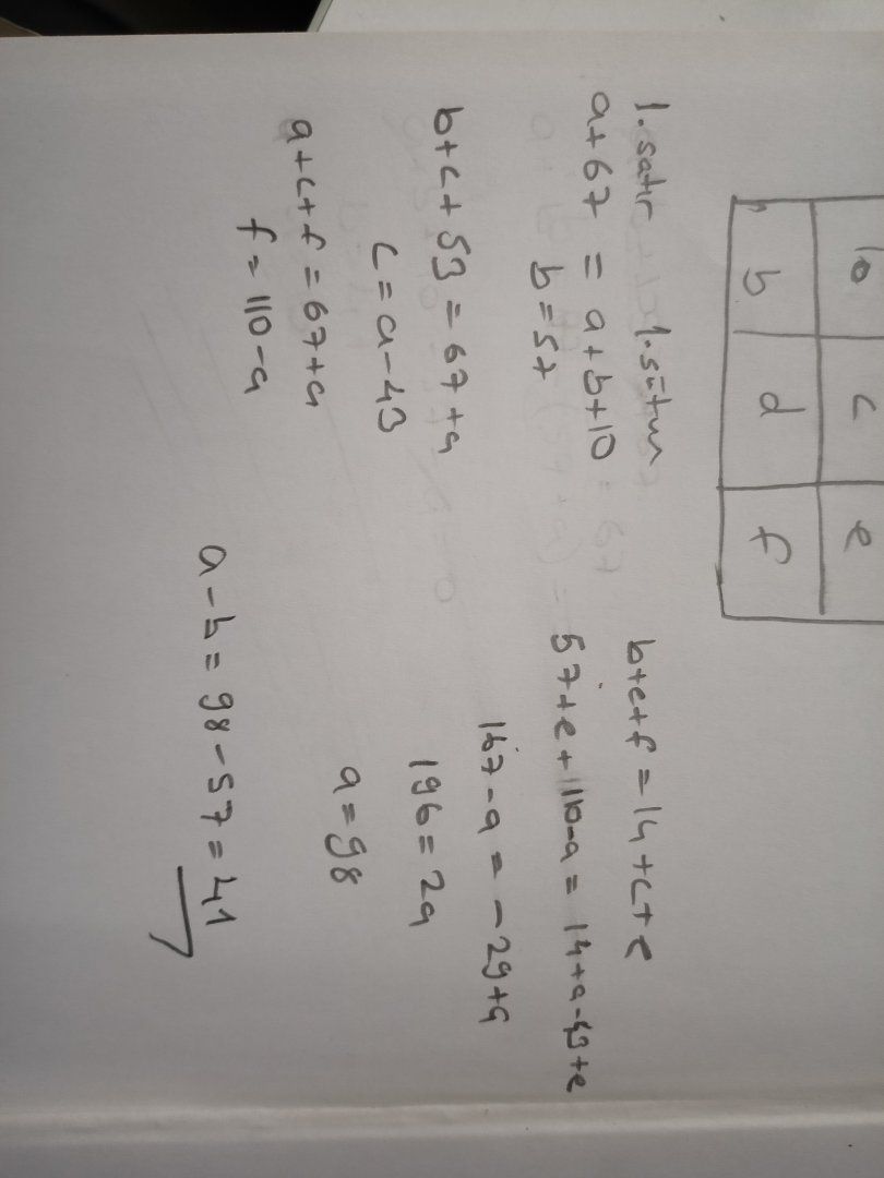 İlk satır ve ilk sütundan b = 57 geliyor bile.