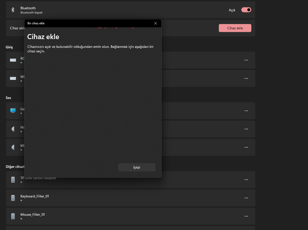 Windows 11 kullanıyorum ve bugün elime UB500 geldi. UB500ü taktım ve adaptörü gördü ama Bluetooth kısmında cihaz listesinde hiçbir cihaz gözükmüyor. Bluetooth desteği olan laptopumda ise birden fazla cihaz gözüküyor. Cihaz bozuk mu yoksa bir şeyi yanlış mı yapıyorum?