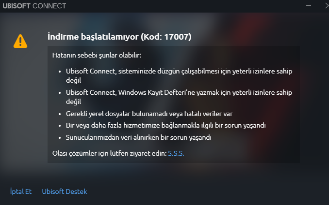 Ubisoft Connect "17007" hatası