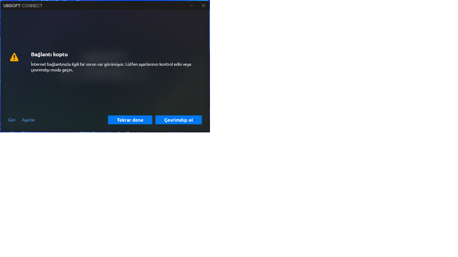 Güvenli internet profili var ise kapatın. VPN de kullanabilirsiniz. Ama o biraz riskli olabilir. Çevrimdışı olup tekrar online olmayı denediniz muhtemelen.Merhabalar yaklaşık 1.5 2 aydır Ubisoft Connect'e giremiyorum Windows 10'da da giremiyordum Windows 11'de de temiz kurulumla geçtim gene aynı sorun devam ediyor şu hatayı veriyor. Çözümü nedir?