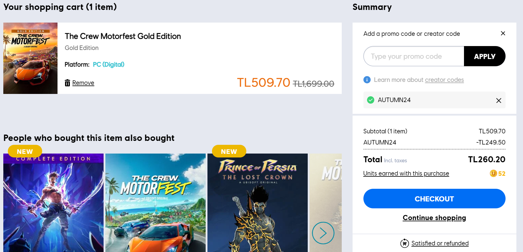 Ubisoft Storeda AUTUMN24 koduyla 250tl indirim alabilirsiniz.