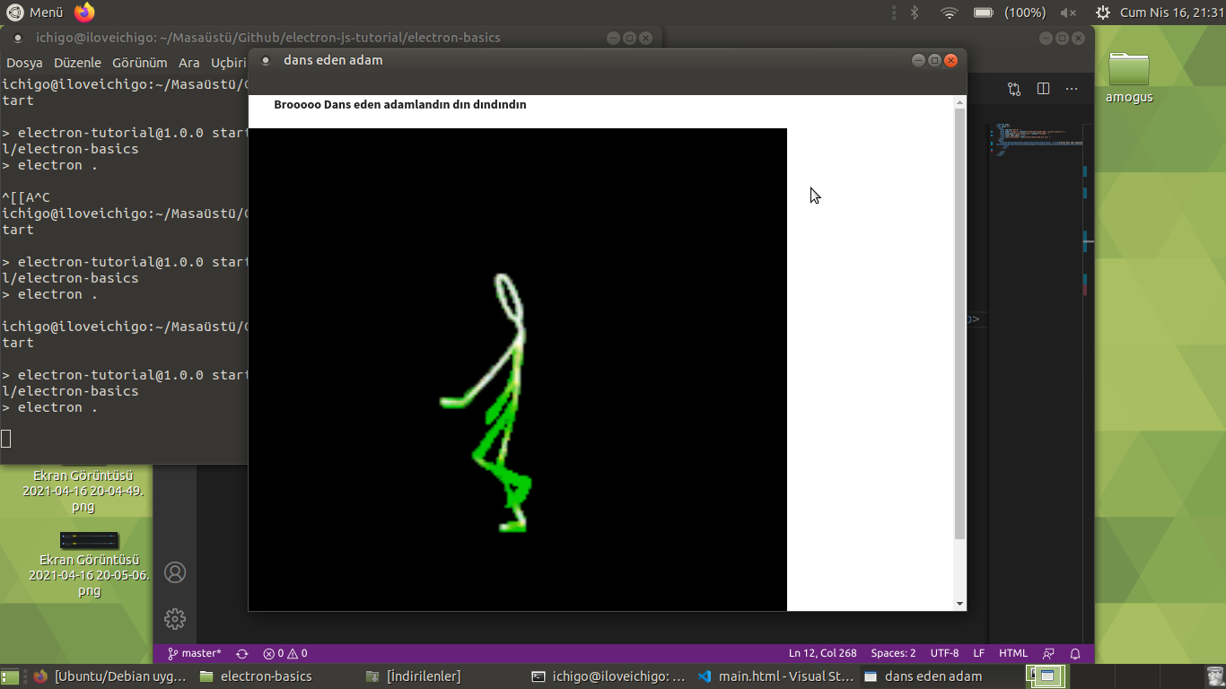 Ben electron ile yaptığım dans eden adamı geliştirmeyi seçiyorum