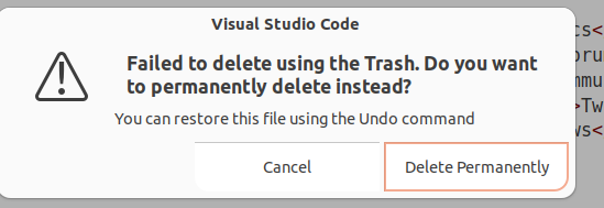Ubuntu Vue.js "Failed to delete using the trash." hatası
