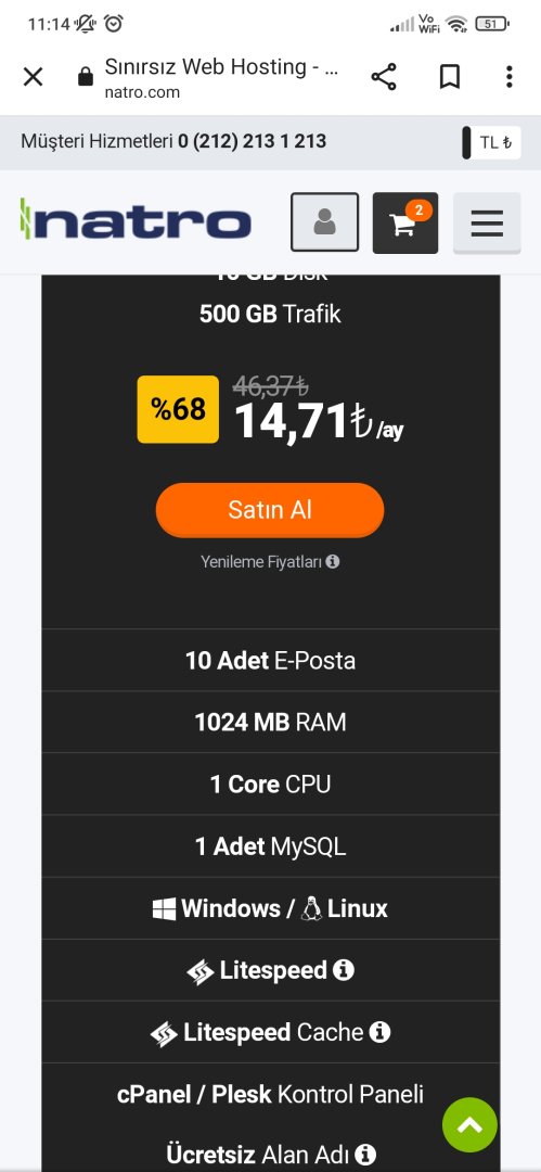WordPress site kurulumu için alacağım hosting ve domaini Natro isimli bir sitede uyguna buldum. (mevcut fiyatlar ektedir.) Ancak daha uygunu var mı diye düşünmüyor değilim. Çünkü bu ücretler ilk yıl için geçerli, sonraki yıllarda yenileme ücretleri çok çok pahalı olacaktır.