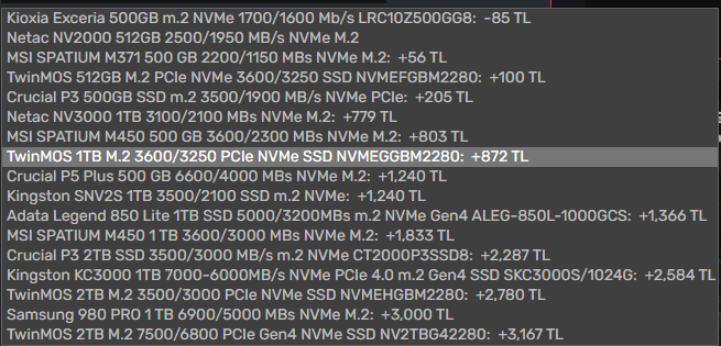 Hocam, merhaba. Dediğim gibi, bütçem çok kısıtlı; lise stajyeriyim ve aylarca biriktirdiğim maaşım, sadece temel ihtiyaçlarımı karşılamama yetiyor. Paranın büyük bir kısmını bilgisayar almak için biriktirdim, ancak ne yazık ki AM5 ve DDR5 bir bilgisayar almak için yeterli değil. Biraz daha para biriktirip RTX ve DLSS gibi özelliklere sahip olan bir 4060 istiyorum. SSD'yi değiştirmek için baktım, ancak Kioxia markasına ait 1TB bir SSD bulamadım. Mevcut 1TB SSD'ler arasında hangisini önerirsiniz?