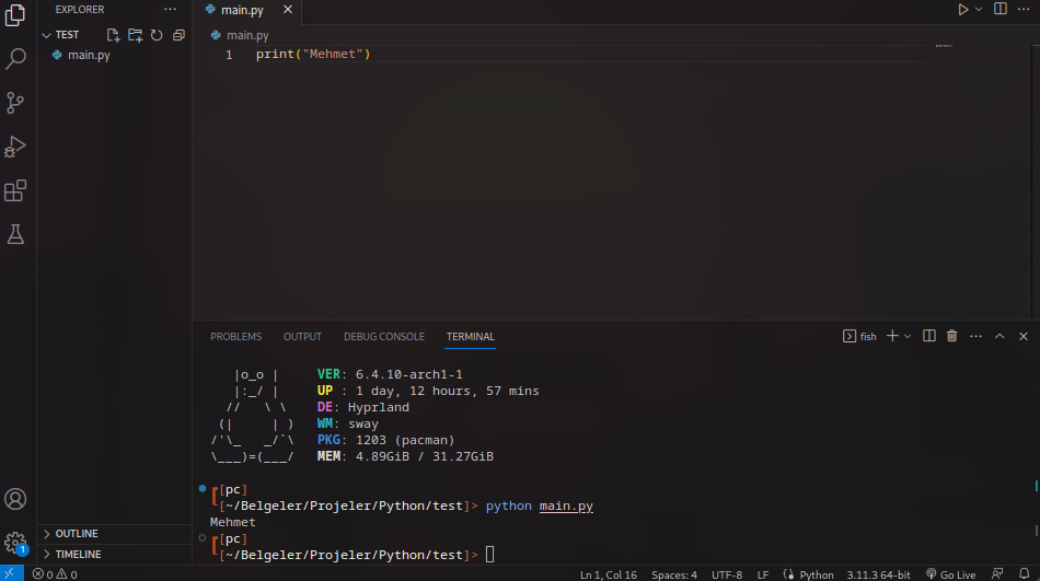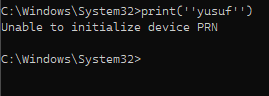 Bilgisayarda Python dersine başladım. İlk derste hoca Python'dan print("Mehmet") yazıyor ve aşağıya sadece Mehmet olarak geçiyor ama benim bilgisayarımda unable to initialize device prn yazıyor. Python kurdum ve pathe ekledim ama olmuyor nedense?