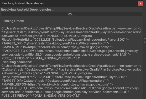 Normalde Build alıyordum. SDK ve ndk pathlerini değiştirmedim değiştirdiğimde pek bir farklı sonuç almıyorum JDK sürümü için 11.0.14.1+1 sürüm olmasını istiyor ancak öyle bir sürüm bulamadım diğer sürümleri kabul etmiyor yani illa bu sürümü kullanın diyor oyunuma reklam atayacaktım ve Google Play Store API seviyesini yükseltin dediği için API seviyesini hedef olarak 34 yaptım. Bu ayarlamayı yaptıktan sonra Build almadım reklam kodlarını yazdıktan sonra alırım diye ancak bu hata çıkınca reklam kodlarını sildim böyle kaldı Build alamıyorum.