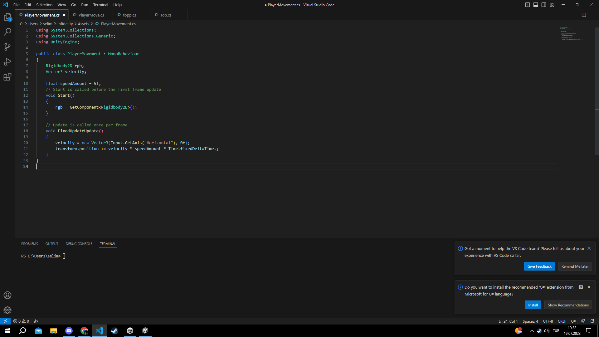 Merhaba Unity kullanarak oyun oyun yapmaya çalışıyorum fakat Visual Studio 2019'dan yazdığım C# kodu Unity üzerinde çalışmıyor.