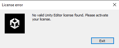 Unity'de "no valid Unity editor license found" hatası
