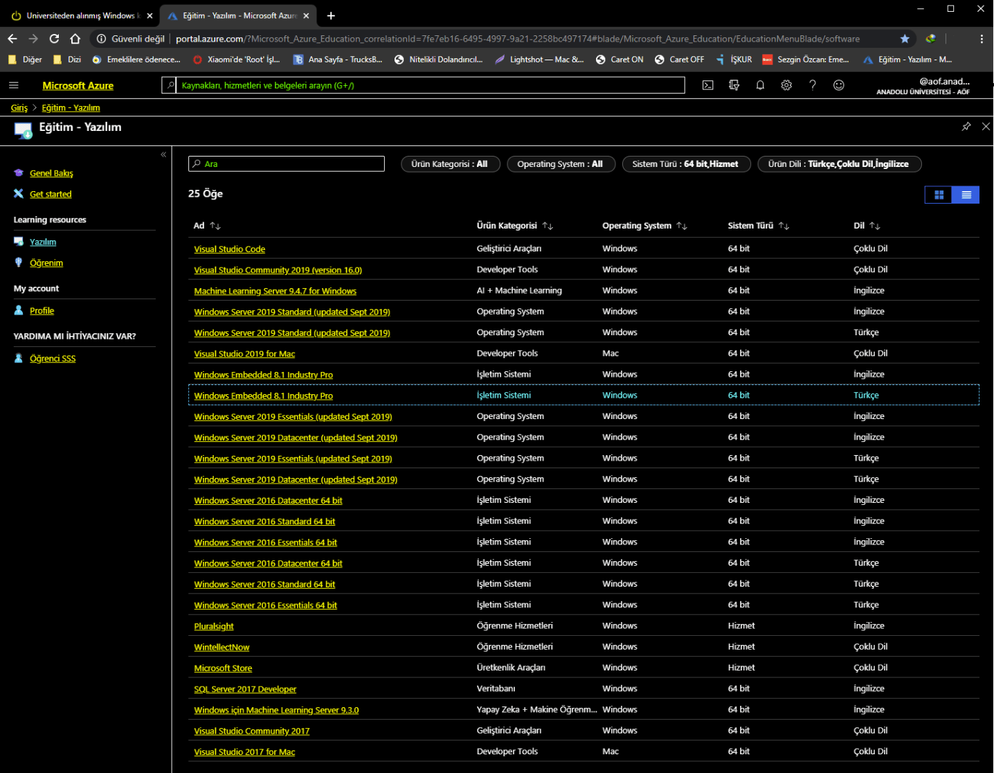 Microsoft’un üniversiteler ile anlaşması var sanırım sadece Windows değil office vb. gibi uygulamaları öğrenciler ücretsiz ve lisanlı olarak kullanabiliyor.