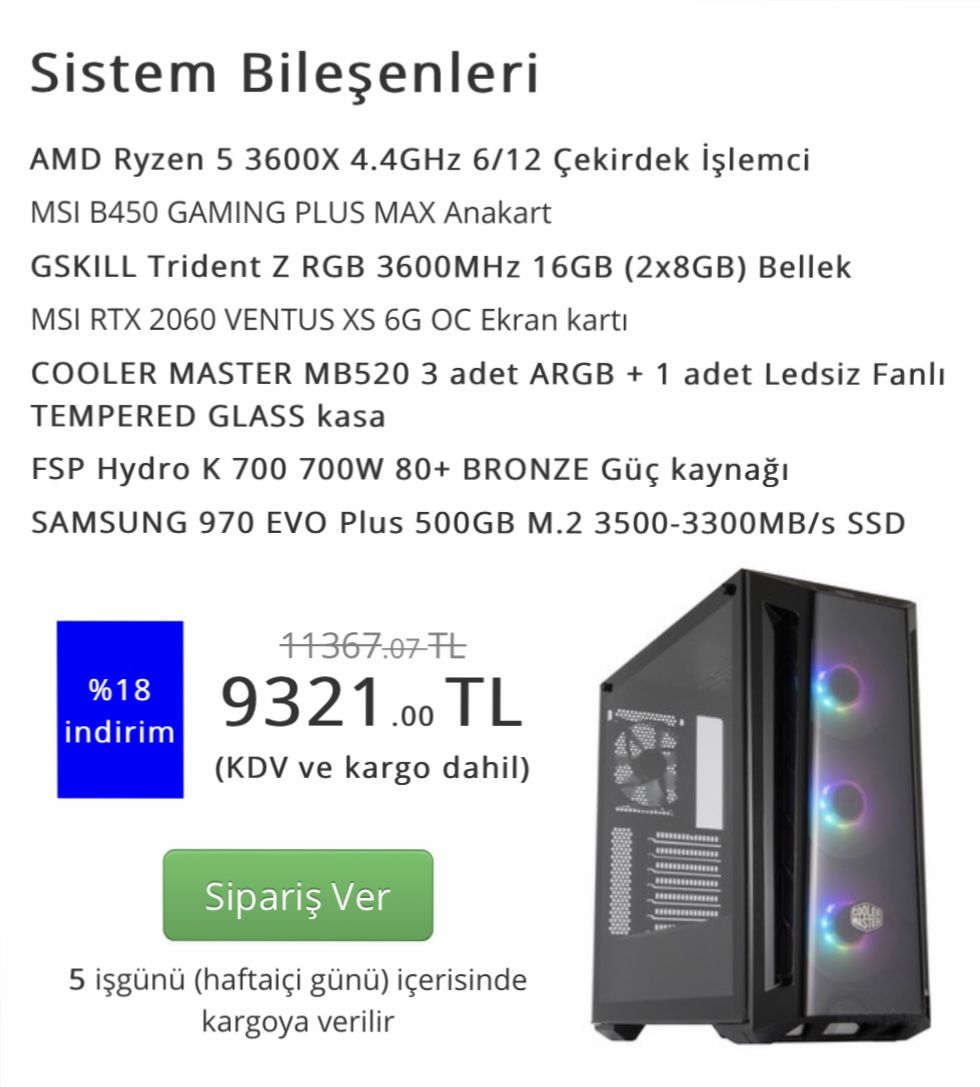 Resmen kazık 10000TL'lik sisteme RTX 2060 ekran kartı koymuş ve Ventus serisi soğutması pek iyi değil diye biliyorum o fiyata daha iyi sistem toplanabilir.