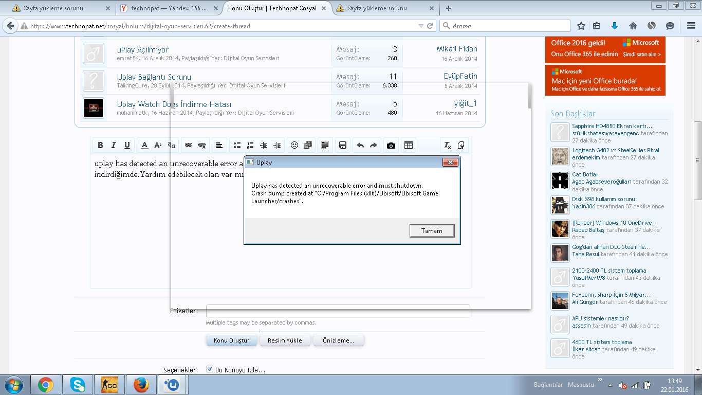 Uplay has detected an unrecoverable error and must shut down hatasını alıyorum Uplay indirdiğimde. Yardım edebilecek olan var mı?