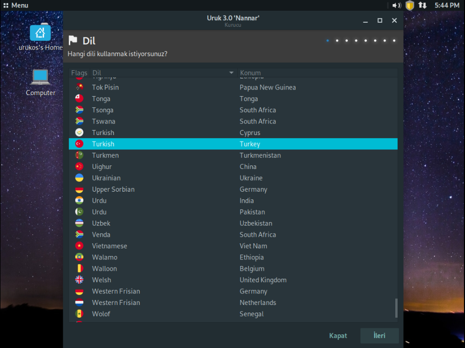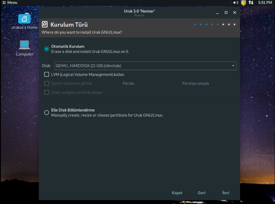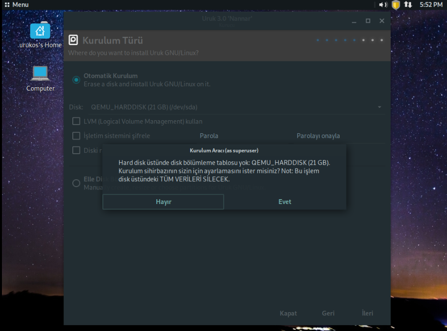 Rehber Uruk Linux kurulumu