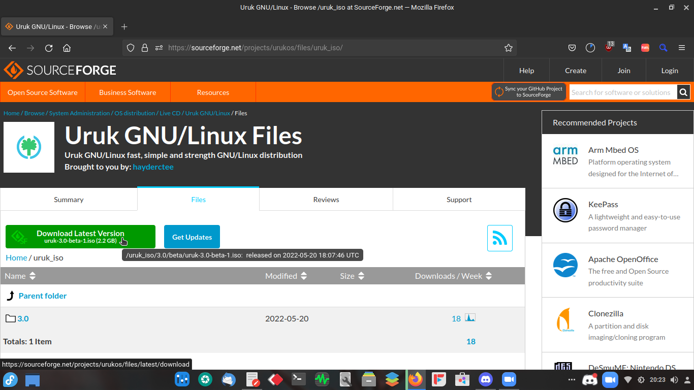 Öncelikle ISO dosyamızı sourgeforge'dan (https://netix.dl.sourceforge.net/project/urukos/uruk_iso/3.0/beta/uruk-3.0-beta-1.iso) indiriyoruz. SHA kontrolünü unutmayın.