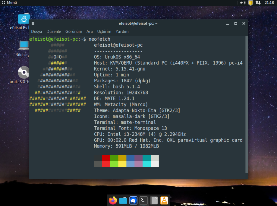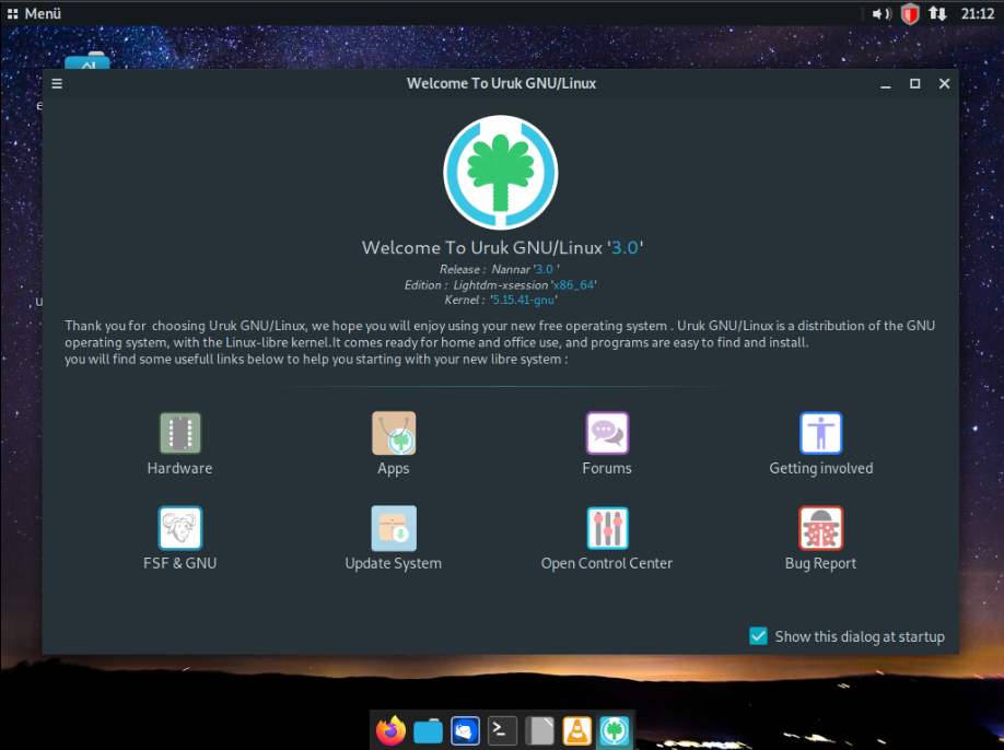 Evet arkadaşlar, bugün @izmirkartali hocamın önerisi ile FSF onaylı (ya da yönergelerini takip eden) dağıtımları incelemeye devam ediyoruz. Bu sefer Trisquel tabanlı Uruk Linux'u inceleyeceğiz. Uruk, Guixsd'ye kıyasla daha çok son kullanıcı düşünülerek yapılmış bir distrodur. Ayrıca .deb dosyalarının yanı sıra RPM gibi paket formatlarını ve yum, zypper, pacman, dnf, guix gibi paket yöneticilerini desteklemeye odaklanır. Şu ana kadar 3 sürümü bulunmaktadır (1.0, 2.0 ve 3.0-beta-1).biz bugün 3.0-beta-1 ISO'sunu inceleyeceğiz zira 2.0 ve 1.0 sürümleri 5 yıllık sürümler ve şu an muhtemelen desteklenmiyorlar. Ayrıca bu dağıtım guixsd gibi Linux-libre kernelini kullanır. Masaüstü ortamı olarak Mate'i kullanır. Ben kurulumu yine sanal makine kullanarak anlatacağım.