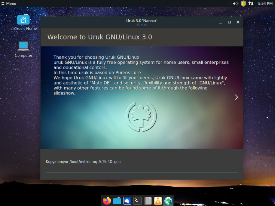@izmirkartali hocamın önerisi ile FSF onaylı (ya da yönergelerini takip eden) dağıtımları incelemeye devam ediyoruz. Bu sefer Trisquel tabanlı Uruk Linux'u inceleyeceğiz. Uruk, Guixsd'ye kıyasla daha çok son kullanıcı düşünülerek yapılmış bir distrodur. Ayrıca .deb dosyalarının yanı sıra RPM gibi paket formatlarını ve yum, zypper, pacman, dnf, guix gibi paket yöneticilerini desteklemeye odaklanır. Şu ana kadar 3 sürümü bulunmaktadır (1.0, 2.0 ve 3.0-beta-1).biz bugün 3.0-beta-1 ISO'sunu inceleyeceğiz zira 2.0 ve 1.0 sürümleri 5 yıllık sürümler ve şu an muhtemelen desteklenmiyorlar. Ayrıca bu dağıtım guixsd gibi Linux-libre kernelini kullanır. Masaüstü ortamı olarak Mate'i kullanır. Ben kurulumu yine sanal makine kullanarak anlatacağım.