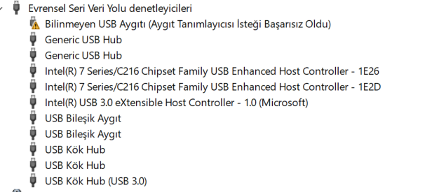 USB aygıt tanımlıyıcısı başarısız oldu hatası