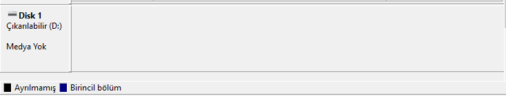 Ok ile işaretlenen yerden aşağıya kaydırıyoruz aşağı kaydırdığımızda diskimiz o alanda