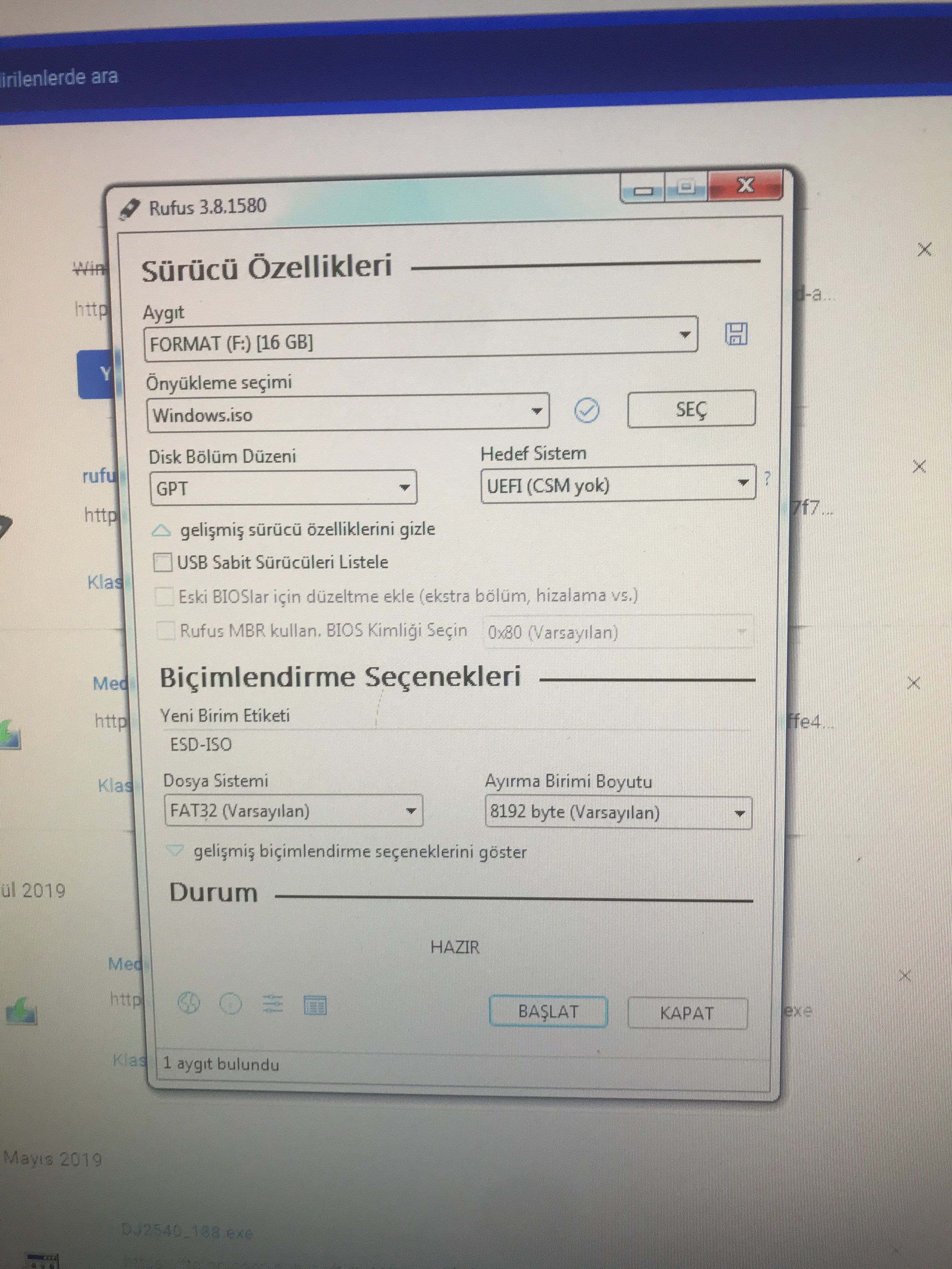 Dediğim gibi BIOS update var ise yapın, ayrıca BIOS tüm sayfaların fotoğrafını paylaşır mısın? Aynı şekilde Rufus ayarlarını da.