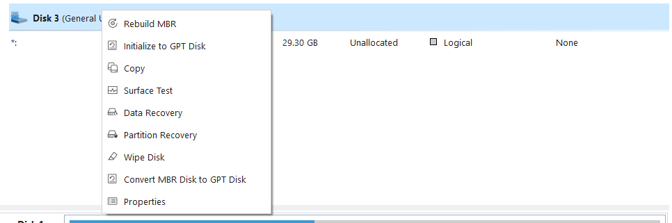 Diski silmeden yapın. 3. diske sağ tık yapın create Partition'a basın. Dosya sistemini NTFS'ya da FAT32 olarak ayarlayın boyutu ve birim etiketini varsayılan yapin. Sonra apply deyin.