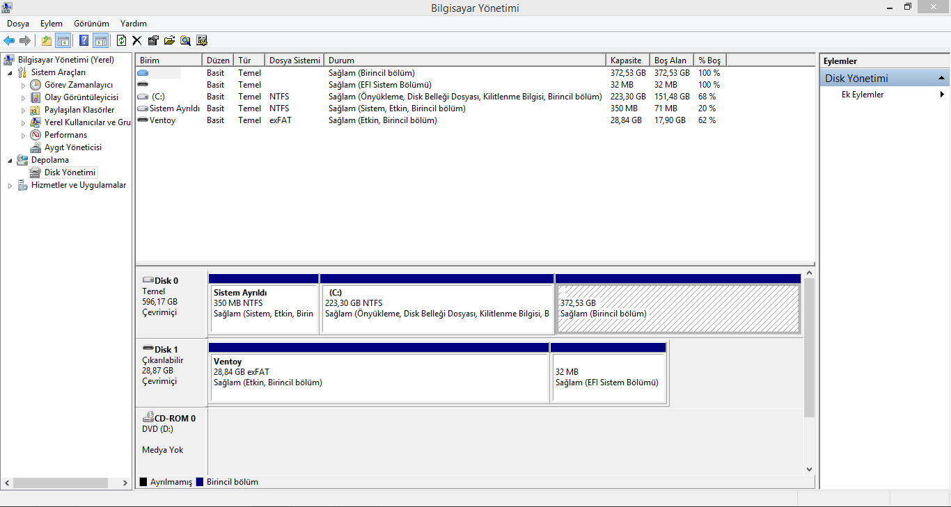 Disk yonetiminden SS atar misiniz? Tam ekran sekilde.