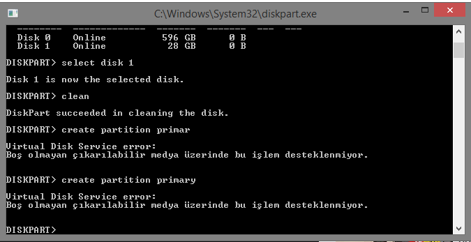 CMD üzerinden silebilir. Ve dediğim yöntem en temiz olanıdır. CMD'den yapması gerek disk part komutlarını yazması gerek.