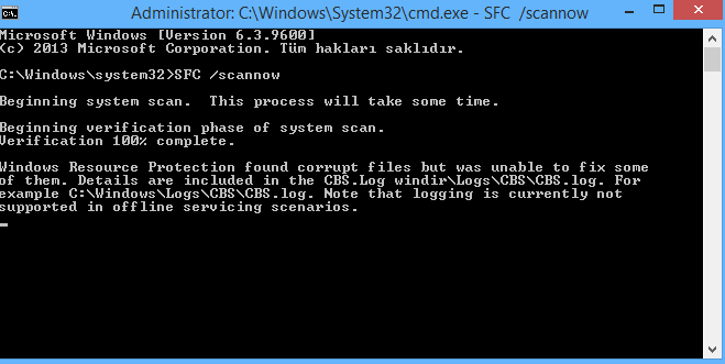 Bazı dosyalar onarılamamış. Şimdi de aşağıda vereceğim rehberin SFC /scannow adımı hariç diğerlerini yapın. O adımı zaten yaptığınız için geçebilirsiniz.