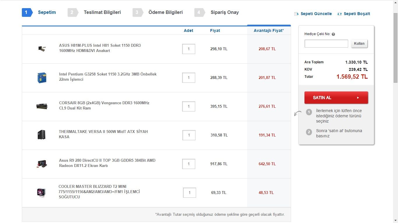 Vatan Bilgisayar şu sıralar fiyatları garip bir şekilde artırıyor. Eksen Bilgisayara bakmanızı tavsiye ederim. Zira şuan eksen'de 1.99TL kur kampanyasıda devam etmekte.