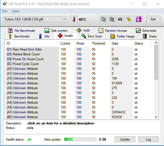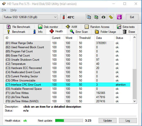 - hdd: sagate baracuda 1 tb ssd: sandisk 128 gb sata