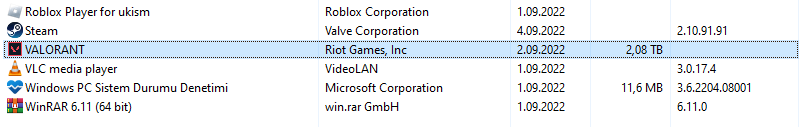 Denetim Masası'ndan uygulamalara bakayım dedim Valorant orada 2, 08TB olarak gözüküyordu ki sorun şu. Benim SSD 110GB, ayrıca HDD bozuk. Normal mi böyle bir şey?