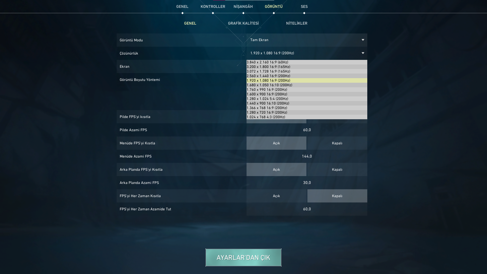 Resimde de gördüğünüz gibi bütün seçenekler 200 Hz de (diğer 165 144 ve 60'a takılmayın onlar başka bir şey) şimdi tamam benim monitör 200 Hz ama ben 165 de kullanıyorum. Eskiden oyunda da 1920 X 1080 165 Hz seçiliydi sonra kendi kendine kayboldu 200 Hz çekti, çok lag yiyorum çözümü nedir? Ekran kartım AMD.