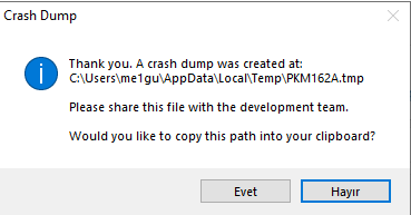 A ciritical eror has occurred and the process must be terminaded would you like to create a crash dump to aid the developers in troubleshooting this issue? This may take up to 5 minutes.