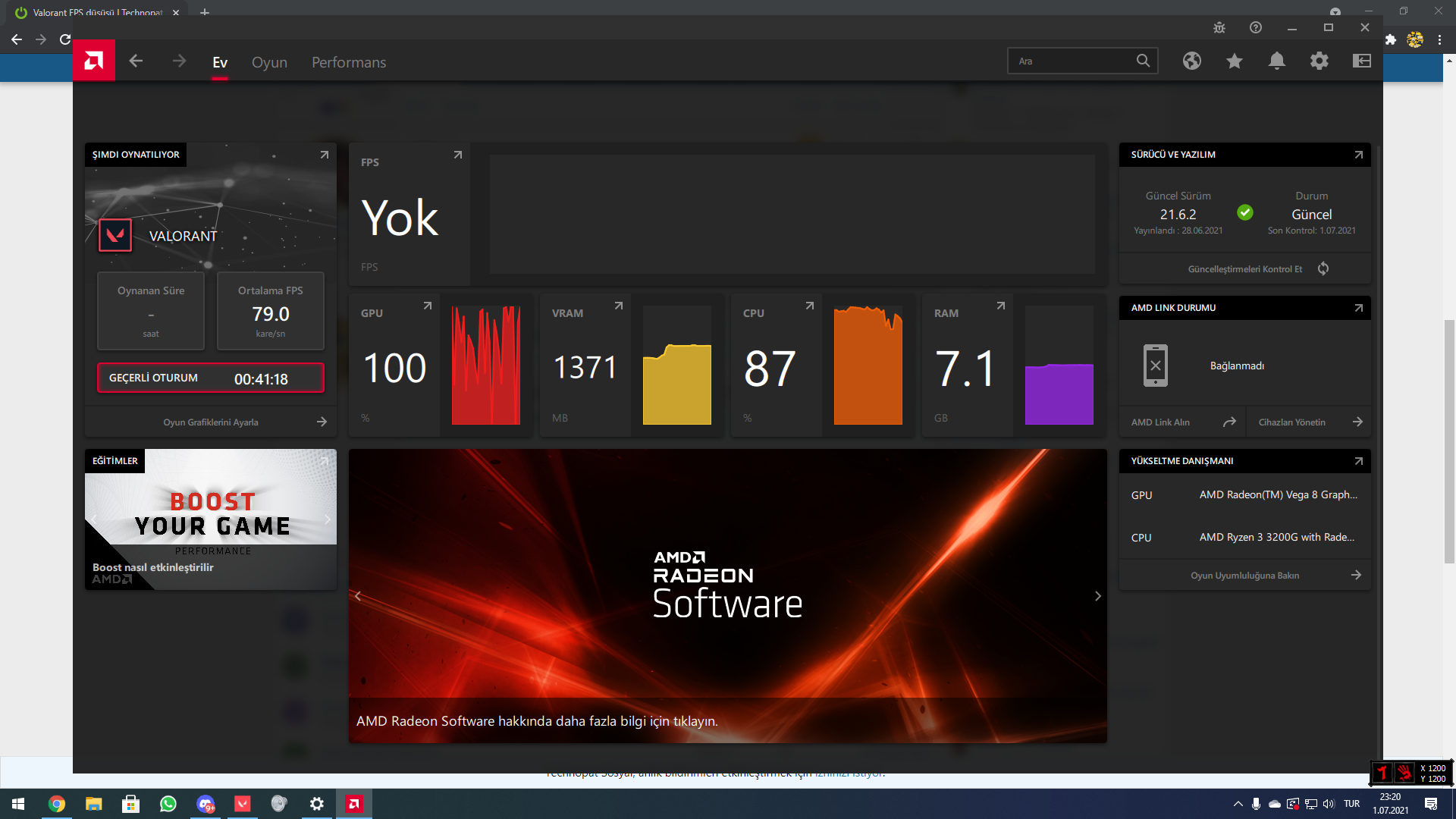 Valorant'ta FPS 100 altına düşmemesine rağmen şu an sürekli drop yiyorum. 12 FPS'lere kadar düştüğü oluyor. Ne yapmam lazım? Bilgisayarda Windows 11 vardı. Ondandır diye temiz kurulum ile Windows 10 kurdum. hala aynı.