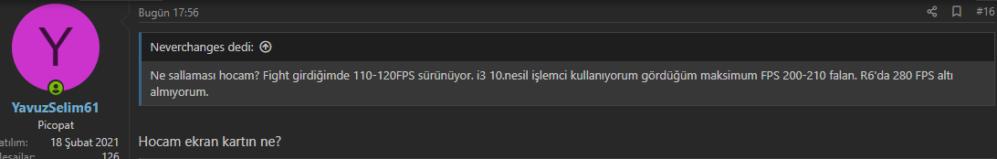 biliyorum hocam dolar kurundan dolayı upgrade yapamadım sisteme. Ancak benim derdim yamadan sonra daha da düşmesi.Hocam ben konu sahibine yazdım onuonun ekran kartı aşırı dandik laptop ekran kartlarından.