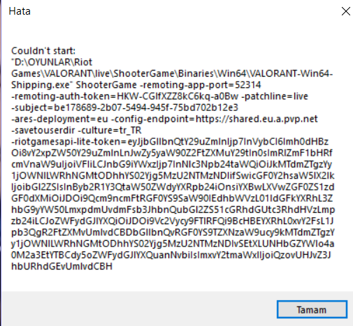 Valorant'ta kırk yılda bir oyun girmek istedim ama adını sanını bilmediğim bu tarz bir hatayla karşılaştım, bundan önce de oyun açılıyordu ama ana menüyü görmeden direk kapanıyordu, nasıl çözebilirim bu sorunu?