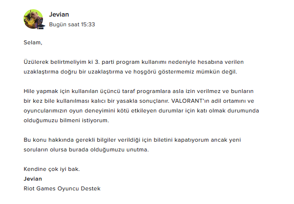 Valve olsa denemeyin derdim ama olay Riot olunca şansınız var diyebilirim.Arkadaşlar biliyorum diyeceksiniz Riot sebepsiz asla ban atmaz mutlaka hile kullandın ya da küfür ettin ve bu yüzden ban yedin diyeceksiniz.