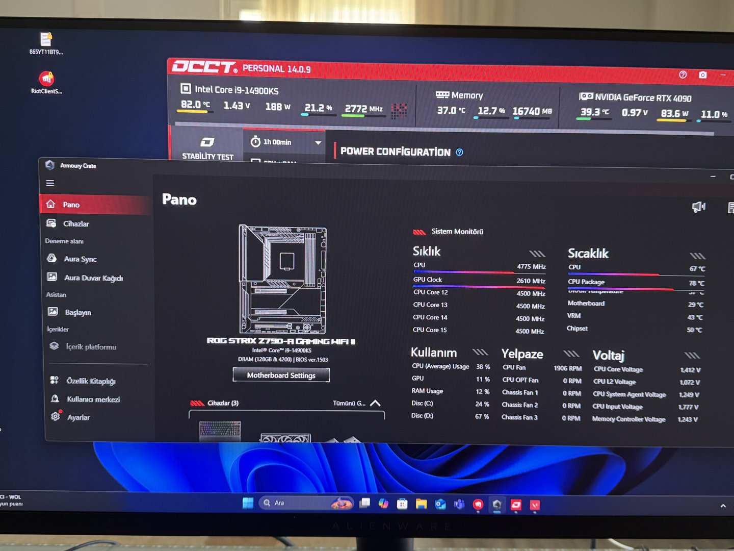 tam size paylaşımı atıyordum sistem tekrar çöktü ama bu sıcaklık değerleri çok oynak örneği alt+tab yapıyorum bekliyorum 60-65 oluyor oyundan anında çıkınca 75-88 arası