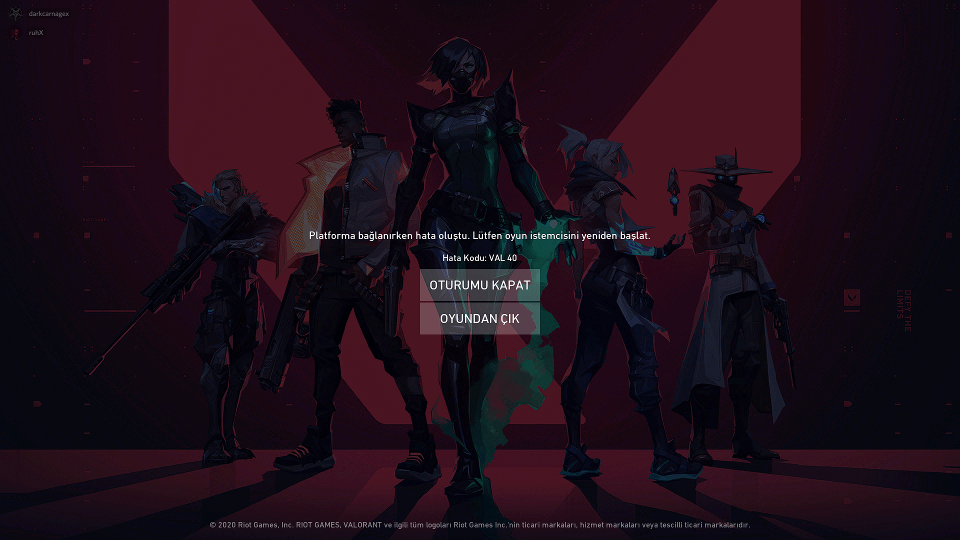 Valoranta giriş yapıp oyunu açtığımda "Platforma bağlanırken hata oluştu. Lütfen oyun istemcini yeniden başlat. Hata Kodu: VAL 40" hatası alıyorum.