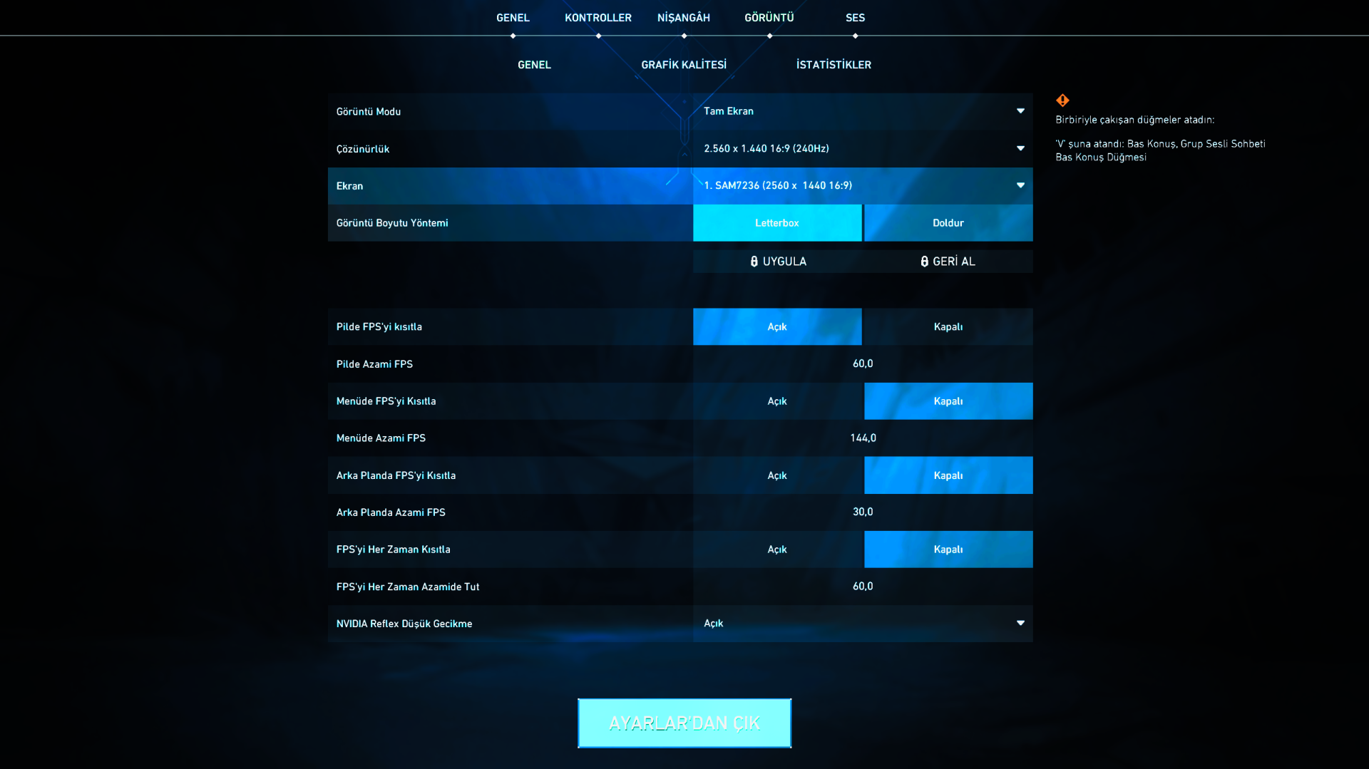 Oyun içi ayarlarda da görüntü geliştirme vs kapalı.