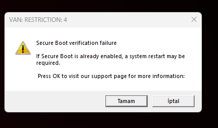 Valorant'ım 2025-X64 tabanlı sistemler için Windows 11 version 23H2 01 toplu güncelleştirmesi (KB5050021) sonrası Secure Boot hatası vermeye başladı. Forumda açılan konuları inceledim bahsedilen her detayı yaptım ama yine de çözülmedi. Görsellerde BIOS ayarlarım mevcuttur, neyi yanlış veya ne yapmam gerek yardımcı olur musunuz?