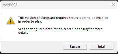 Oyuna girdikten 1-2 dakika sonra bu hatayı verip atıyor ve oyun kapanıyor BIOS üzerinden Secure Boot'u açmayı denedim enabled konumuna getirdiğim halde not active şeklinde yazıyor ve sorun çözülmüyor.